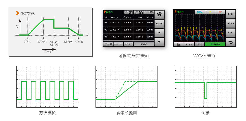 支持多種主流通訊接口,如RS-232、RS-485、Ethernet、USB、GPIB 與模擬控制(Analog control),另提供專屬的上位機軟件Preen Program,用戶僅需透過簡易的參數設定,即能遠程操作測試電源,執行復雜且精準的控測試編程。(延伸閱讀:Preen Program讓遠程操作變得輕松掌握)